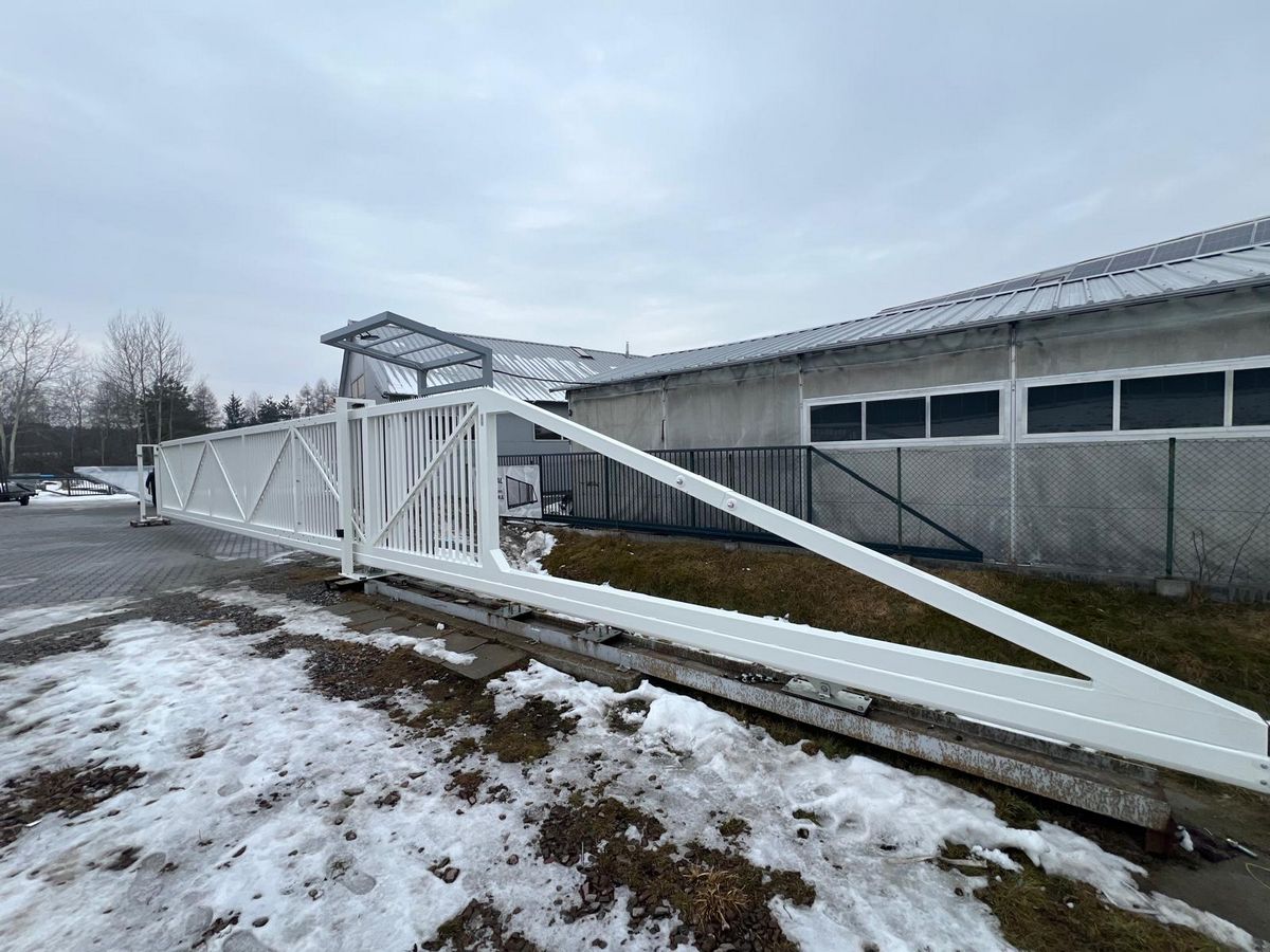 Nasza ostatnia realizacja to monumentalna, biała brama wjazdowa o świetle przejazdu wynoszącym aż 14 metrów! Przy wysokości 2 metrów, konstrukcja ta stanowi solidną barierę i prestiżowy element wizualny posesji. Wybór czystej bieli nadaje całości nowoczesnej lekkości, efektownie wyróżniając bramę na tle otoczenia. Tak ogromny gabaryt wymagał od nas szczególnej inżynieryjnej precyzji – idealne wypoziomowanie długiej linii prowadzącej oraz perfekcyjna kalibracja zaawansowanej automatyki to fundamenty płynnej i cichej pracy systemu. Zastosowane napędy o dużej mocy gwarantują pełną kulturę pracy i najwyższy poziom bezpieczeństwa, mimo potężnych wymiarów skrzydła. Projekt ten potwierdza, że w RAKSTAL z powodzeniem łączymy wielką skalę z dbałością o każdy techniczny detal. Dostarczamy rozwiązania, które budzą podziw rozmachem i niezawodnością, udowadniając, że nawet największa brama może zachwycać stylem i lekkością ruchu. Brama w formacie XXL dla najbardziej wymagających inwestorów.